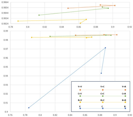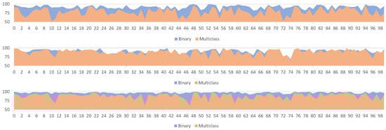 The approach better leverages binary classifiers’ advantages, yielding higher prediction confidence. Figure 5 illustrates this through accuracy–confidence relationships, showing EBDF (green/orange/yellow) outperforming standalone classifiers (blue), with proximity to the top-right indicating optimal performance.