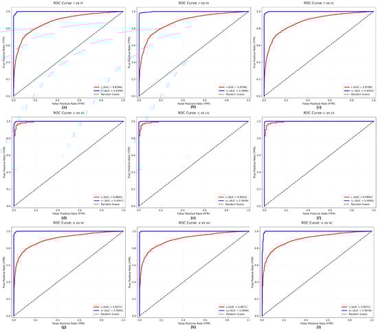 True positive rate (TPR) for binary classifiers and multi-classification on CIFAR-100 by Resnet (top), CLIP (middle), and Vit (bottom).