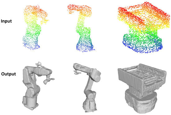 The efficacy of a DT is fundamentally contingent on the accuracy and fidelity of its underlying 3D model. Point cloud data, acquired via LiDAR scanning or photogrammetry, has emerged as the primary modality for capturing the complex geometries of as-is industrial environments [10,11]. However, raw point clouds are inherently imperfect, suffering from significant data degradation due to occlusions, non-uniform sampling densities, sensor noise, and the intricate nature of industrial machinery [12]. These challenges give rise to incomplete and ambiguous geometric representations, which severely impede the direct generation of accurate, watertight, and topologically sound 3D meshes, which are required for robust DT applications [13,14,15].