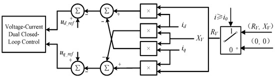 Equation (9) indicates that the fault inception inrush current stems from decaying aperiodic components, and adjusting the grid impedance effectively suppresses the inrush current. Based on this, this section proposes an approach to automatically activate virtual impedance based on the fault current for transient overcurrent limitation, with the detailed principle illustrated in Figure 8.