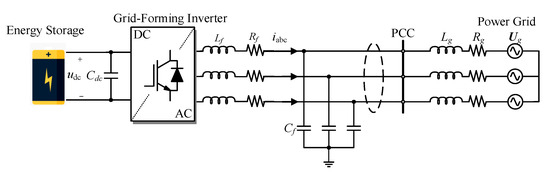 Figure 1 illustrates the typical control topology of grid-forming energy storage systems during grid integration. In terms of control strategies for grid-forming energy storage grid integration, the primary control approaches include droop control [28], virtual synchronous generator (VSG) control, and others [29]. This paper focuses on VSG control as a case study: the active power–frequency control loop emulates the rotor motion equation of a synchronous generator to ensure system frequency stability under various operating scenarios, while the reactive power–voltage control loop mimics the stator voltage equation of a synchronous generator to effectively regulate the reactive power and support voltage magnitude.