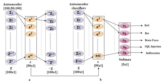 AE-based on classifiers: (a) after training AE [100:50:100] and (b) retrained using a supervised learning approach.