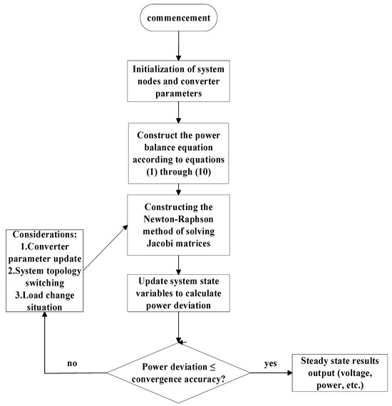 Furthermore, to synchronize converter state adjustments during switching, the device implements coordinated control strategies including fault detection, switching execution, and control parameter updates. These processes are embedded into the iterative steady-state model-solving procedure, enabling smooth transitions between pre-fault and post-fault system states.