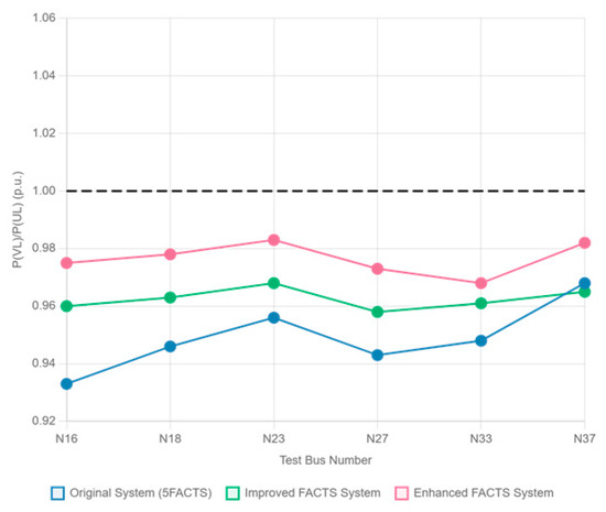 where Vi is the actual voltage at node i, Vimin and Vimax are the predefined minimum and maximum voltage thresholds, respectively, and Vinom is the rated voltage. This indicator reflects the system’s ability to maintain safe operation under disturbances.