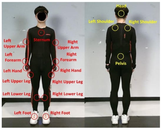Figure 3. Placement of 17 IMU sensors of the Xsens system.