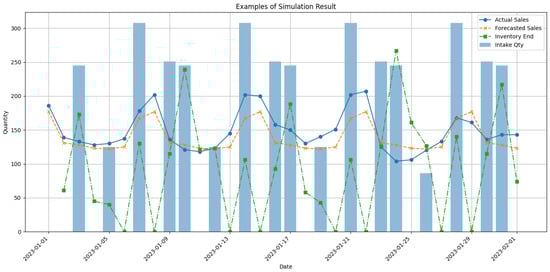 - Forecasted Inventory (: The forecasted inventory is computed as the difference between the current inventory at the end of the day and the forecasted sales during the lead time, adjusted for any intake from previous orders.