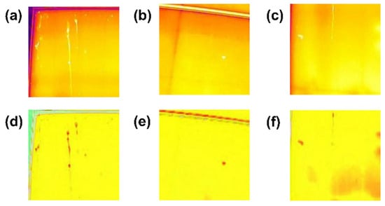 Comparison of infrared images before and after HSV transformation: (a–c) are randomly selected infrared images; (d–f) are the corresponding converted images.