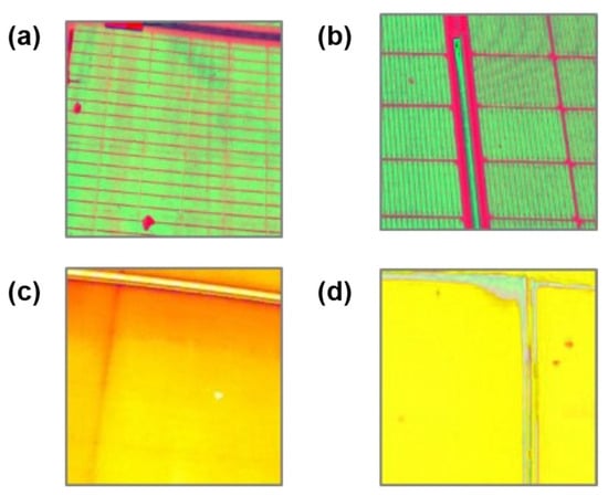 Typical images of the dataset. (a) RGB image of a single PV panel. (b) RGB image of multiple PV panels. (c) Infrared image of a single PV panel. (d) Infrared image of multiple PV panels.