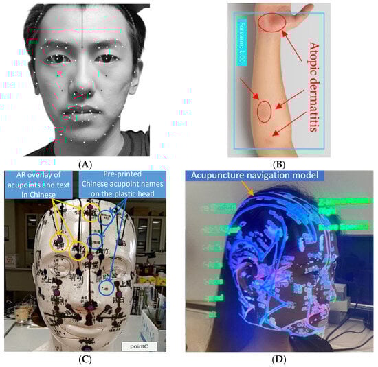 - Chiou, S.-Y.; He, M.-R. Acupuncture navigation method integrated with augmented reality. Biomed. Mater. Eng. 2024, 35, 536–547. [Google Scholar] [CrossRef] [PubMed]