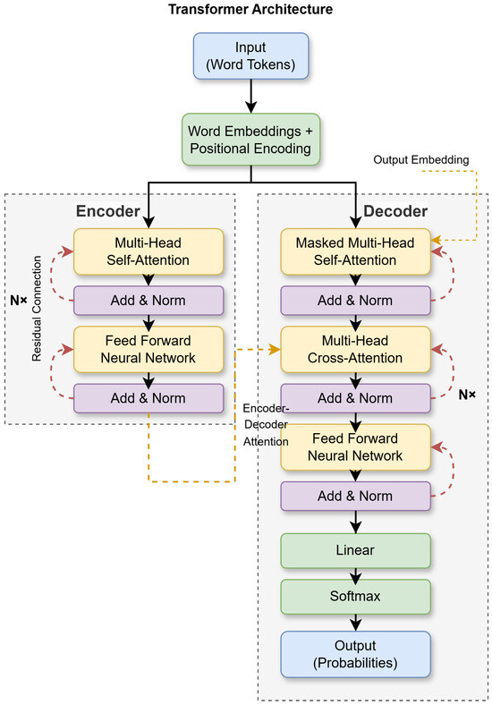 - Vaswani, A.; Shazeer, N.; Parmar, N.; Uszkoreit, J.; Jones, L.; Gomez, A.N.; Kaiser, Ł.; Polosukhin, I. Attention Is All You Need. In Advances in Neural Information Processing Systems 30 (NIPS 2017); Curran Associates, Inc.: Red Hook, NY, USA, 2017; pp. 5998–6008. [Google Scholar]