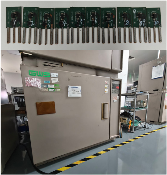 Figure 4 shows the ten MSL128 ultra-high-frequency high-voltage diode samples used in the HAST tests and schematic of the HAST chamber (110 °C/85% RH) compliant with GJB 548C. These validate the experimental setup for accelerated aging data collection.