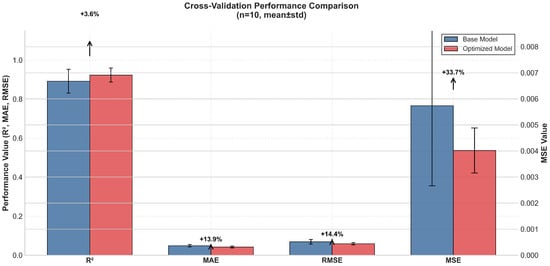 Figure 6 shows the comparison of various performance metrics (R2, MSE, MAE, RMSE) of the model on the cross-validation set before and after IABC optimization.