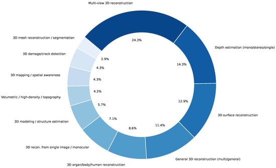 Percentage distribution of 3D reconstruction tasks reported in the literature.