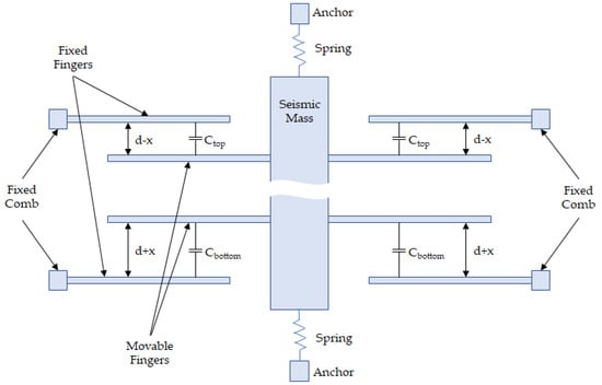 The principle of operation of the capacitive accelerometer acting in the X- and Y-axes (not to scale) [13].