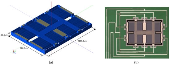 We chose to combine this technology with the application-specific integrated circuit (ASIC), which was also manufactured using X-FAB technology (180 nm IC process), Erfurt, Germany. We used two different technologies (one for the MEMS and one for the ASIC) that were provided by the same vendor so that they could be easily connected in a single package. More interesting information about this structure can be found at [13].