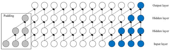 Convolutional Neural Networks (CNNs) are extensively utilized in domains such as facial recognition and satellite imagery analysis, demonstrating proficiency in feature extraction from multidimensional datasets [36,37]. Figure 1 comprises pooling layers, fully connected layers, activation layers, and convolutional layers [38]. The Temporal Convolutional Network (TCN) represents an evolution of the standard CNN by introducing dilation factors. This adaptation allows the network to selectively process data, optimizing learning efficiency in terms of cost and time. TCNs efficiently leverage historical data for temporal problem-solving and integrate causal convolution to preclude the inadvertent incorporation of future information during the learning phase.