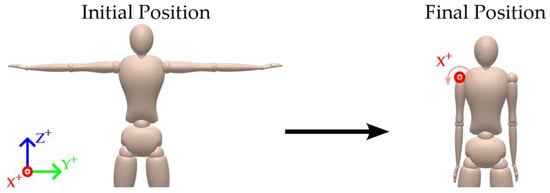A shoulder flexion/extension around the X-axis (Roll).