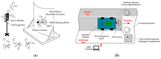 - Zhong, M.; Ma, Y.; Li, Z.; He, J.; Liu, Y. Facade protrusion recognition and operation-effect inspection methods based on binocular vision for wall-climbing robots. Appl. Sci. 2023, 13, 5721. [Google Scholar] [CrossRef]