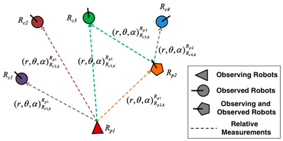 - Mehrez, M.W.; Mann, G.K.I.; Gosine, R.G. An optimization based approach for relative localization and relative tracking control in multi-robot systems. J. Intell. Robot. Syst. 2017, 85, 385–408. [Google Scholar] [CrossRef]