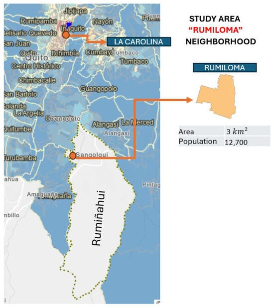 For the study of the suburban area, data collection was conducted in the southeast of Ecuador’s capital, specifically in the Rumiloma neighborhood, which belongs to the San Pedro de Taboada parish in the Valle de Los Chillos (Figure 8). It is worth noting that the selected area has a low base station density per km². At the end of the data collection process, it was determined that a total of five eNBs participated in handover processes.