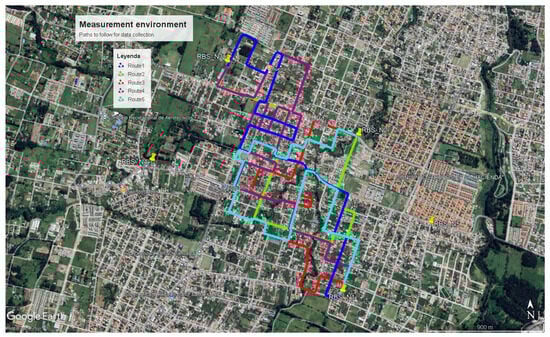 The selected routes for data collection in the aforementioned area are shown in Figure 6.