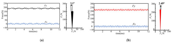 Comparison of suspension force error angles: (a) before optimization; (b) after optimization.