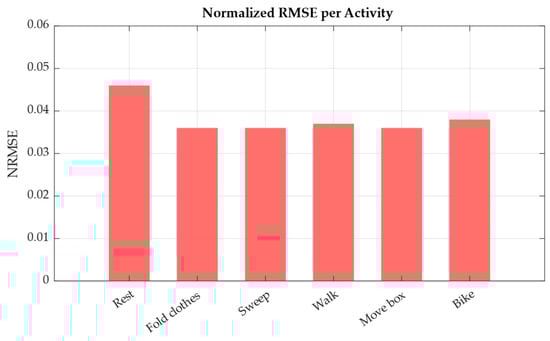 Finally, model performance was also analyzed by activity type. As shown in Figure 12, the NRMSE was computed separately for each task.