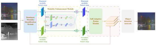 that adaptively integrates complementary information from both modalities to enhance object detection performance under varying environmental conditions. As illustrated in