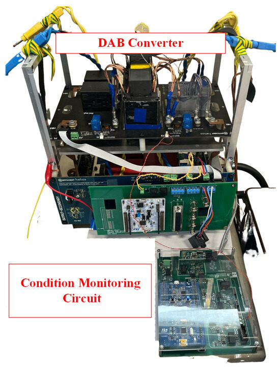 The DAB converter test bench is shown in Figure 7. The phase current (IL in Figure 2) is measured using a current transformer placed in series with the primary side of the transformer in the DAB. When a switch turns on, the measured phase current corresponds directly to the current flowing through that switch.