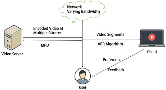 The overall architecture of the adaptive video streaming system comprises four core components: the video server, network transmission path, client-side adaptive decision process, and user preference feedback module. The video server delivers multiple bitrate-encoded video segments along with the Media Presentation Description (MPD) file to clients via the network. Client devices execute the adaptive bitrate (ABR) decision module to select optimal bitrates based on real-time network conditions and buffer status. Concurrently, the system collects user preference feedback to iteratively optimize the policy model, thereby achieving personalized Quality of Experience (QoE) enhancement as illustrated in Figure 1.