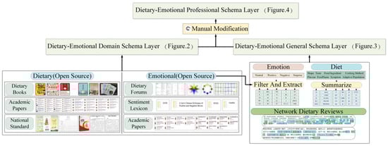 - Given that the existing dietary–emotional schema layer cannot adequately capture the diverse emotional expressions found in an online dietary review text, this paper constructs an enhanced dietary–emotional knowledge schema layer using the complementary coupled method. Guided by the constraints of the existing domain diet ontology, relevant concepts are abstracted from the real-time review dataset to refine and expand the original domain schema layer by covering previously missing concepts. Experiments are conducted to validate the applicability of the newly constructed schema layer.