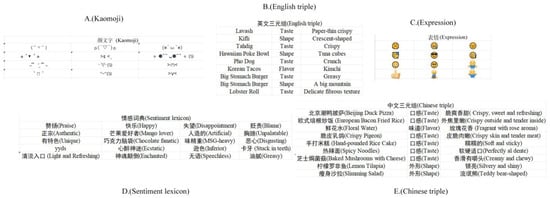 Web 2.0 technologies have catalyzed social media platforms [], enabling instantaneous opinion sharing that generates substantial user-generated content online []. As dietary habits constitute a fundamental aspect of daily life, they feature prominently in public discourse on these platforms. Review aggregators like Yelp and Dianping now host extensive restaurant evaluations covering food quality, hygiene standards, and dining experiences. Crucially, the emotion dimensions within these reviews provide valuable insights for consumer decision making [].