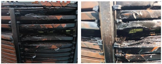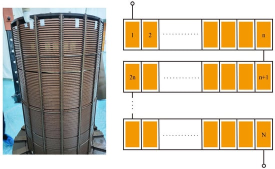 The phase b winding of the LV side was also partially damaged by the external fault. The burning and displacement occurred between the 4th and 5th disk, as shown in Figure 18. The fault was severe, but the damaged area was not significant. The fault phase gave the highest DC resistance readings, which indicated a poor contact problem rather than a turn-to-turn short fault.