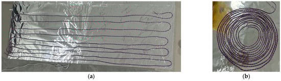 Cable laid in two different ways to study the impact of the turn-to-turn capacitance: (a) placed above the foil, straightly laid; (b) placed above the foil, circularly laid.