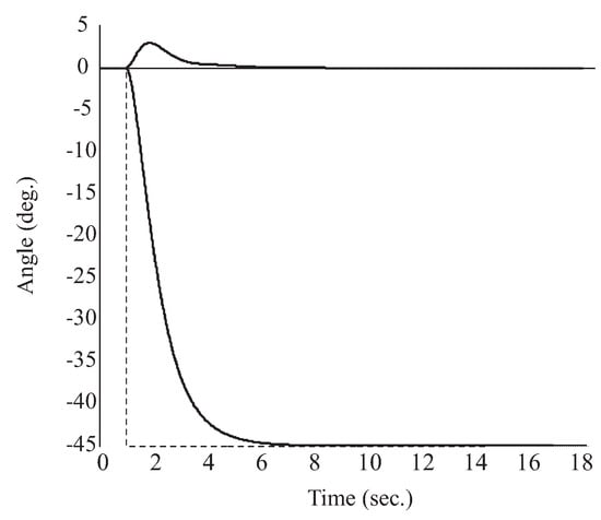 The two-link robot transient response and the final values of and of the first and second links, respectively.