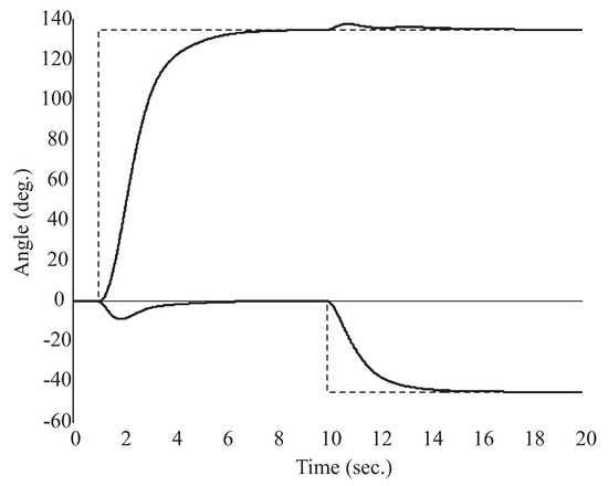 Finally, Figure 13 shows the transient response of the two-link robot starting from non-zero initial conditions, specifically in the first joint and in the second.