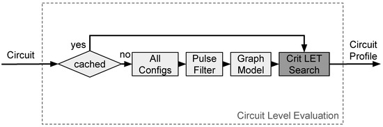 The LETth of a circuit is defined as the minimal LET necessary to cause a bit flip in an output interface in the most sensitive fault configuration. To find the LETth, every valid fault configuration has to be considered. Thus, this layer’s responsibility is to find the LETth. It is possible to generate every combination of factors that comprise the fault configuration and allow the Critical LET Search to determine its validity electrically. However, this is not ideal, as the main performance bottleneck is the number of electrical simulations. In electrical validation, two extra simulations are carried out for every possible fault configuration. As an illustration, a test was run using the default parameters of the search for the minimum LET, with a Mirror Full Adder as a benchmark. It was observed that, with this method, 41% of all simulations were only used for validating fault configurations.