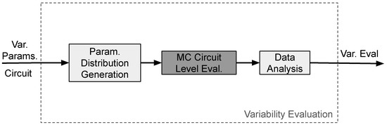 Simulation approaches typically rely on TCAD, electrical, or register-transfer-level (RTL) simulations. Some methodologies utilize TCAD simulations to model a transistor’s response to particle collisions more accurately, incorporating this response into electrical simulations to better understand the effects of radiation [10,11,14]. While TCAD simulations offer greater precision, they can be time-consuming, necessitating auxiliary techniques to expedite the process. Recently, researchers have begun to investigate the use of machine learning (ML) techniques and Look-Up Tables (LUTs) in radiation evaluation, either alone or in combination with traditional electrical simulations. In [11], the authors propose using a Look-Up Table (LUT) to store the TCAD characterizations of gates, allowing these to be utilized in electrical simulations instead of conducting all simulations at the TCAD level. A different approach proposed in [10] suggests employing machine learning to learn the frequently used TCAD responses of standard devices and using predicted responses to determine radiation sensitivity. It is essential to note that the RTL-level evaluation enables designers to assess a broader range of circuit sizes; however, this comes at the expense of precision in evaluating radiation fault propagation and generation, as much of the circuit’s electrical response is abstracted [12,13]. Finally, some works focus on simulating radiation effects at the electrical level [9,11,15]. The electrical level is the abstraction level chosen for this study, as it strikes a desirable balance between precision and execution time. Although similar approaches have been previously explored [9], many do not account for variability in their robustness analyses.
