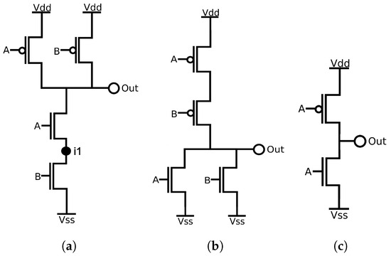 Firstly, there is a simple filter to discard impossible faults. If a node is not connected to a terminal of a PMOS device, it cannot undergo a 0-1-0 fault; likewise, the same is true for NMOS and 1-0-1 [23]. Thus, every fault configuration with these properties can be discarded before any further consideration. To avoid unneeded electrical validation, a logical validation of all fault configurations is conducted before any electrical simulation.