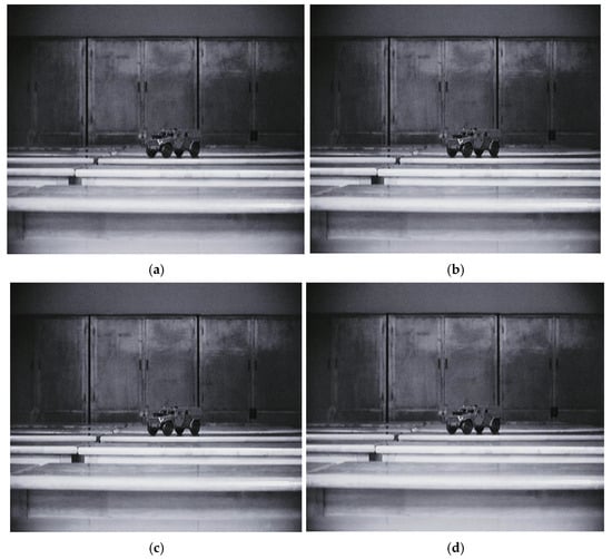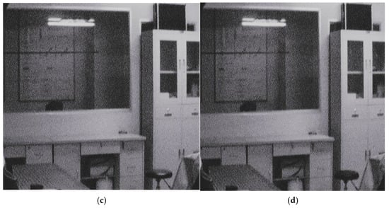 Original low-light polarization images with different polarization angles: (a) 0 degree, (b) 45 degrees, (c) 90 degrees, and (d) 135 degrees.