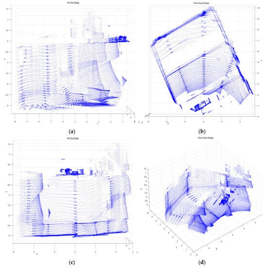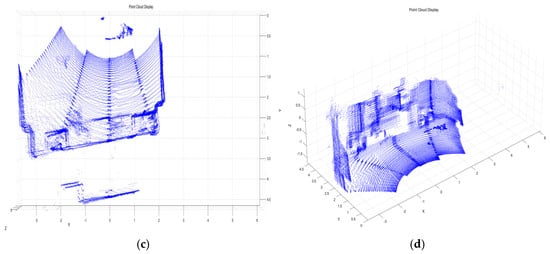 Experimental pre-collection of the point cloud obtained by the projection of each plane. (a) Main view. (b) Top view. (c) Left view. (d) Cubic view.
