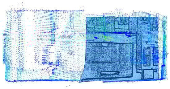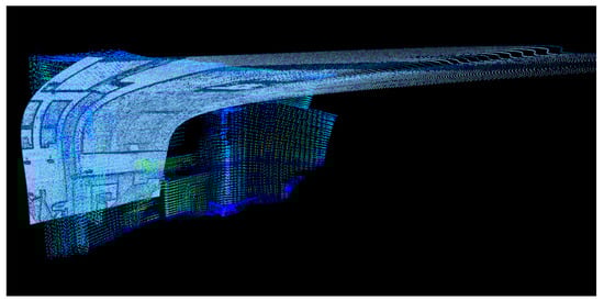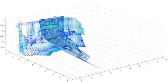 The fusion of point cloud and image is based on the premise of the alignment of the two, through the alignment of the point cloud and image data, to establish the correspondence between each 3D point and its corresponding image pixel. First, the 3D point cloud is projected onto the optical image to obtain the corresponding pixel coordinates (x, y). Then, the R, G, B values at pixel (x, y) are assigned to the point cloud, thereby coloring the 3D data with true-color texture. After obtaining the optimized extrinsic matrix, the relationship between image and point cloud coordinates is established via the covariance equation, and the R, G, B values of each image pixel are transferred to the corresponding point in the point cloud model, completing the fusion [].