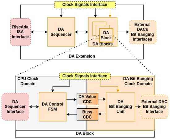 Architecture of the DA Extension (top) and Architecture of a DA Blocks (bottom).
