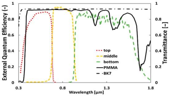 - Miller, D.C.; Kempe, M.D.; Kennedy, C.E.; Kurtz, S.R. Analysis of Transmitted Optical Spectrum Enabling Accelerated Testing of Multijunction Concentrating Photovoltaic Designs. Opt. Eng. 2011, 50, 13003. [Google Scholar] [CrossRef]