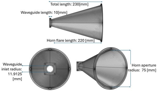 Figure 3 shows the integrated system geometry. While this formula provides a first-order analytical design starting point, final lens optimization was performed using full-wave electromagnetic simulation, which inherently accounts for the horn’s specific wavefront characteristics and associated phase variations.