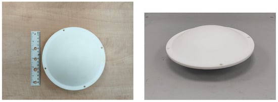 Given the lens geometry, a custom aluminum fixture (Figure 10) was fabricated to provide precise and stable positioning of the first milled convex surface during machining of the opposing side. The resulting surface finish was sufficient for target electromagnetic performance, obviating additional polishing or surface treatment. Figure 11 presents the finalized biconvex PTFE lens.