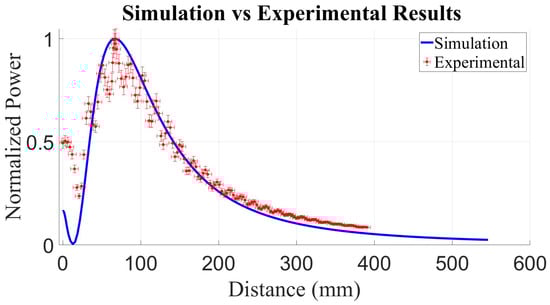 Collected power data was normalized relative to maximum recorded power to facilitate direct comparison with COMSOL Multiphysics simulation results. This normalization allowed experimental data to be plotted alongside simulated results (presented in Section 6), illustrating correlation between measurement and simulation for lens focusing performance.