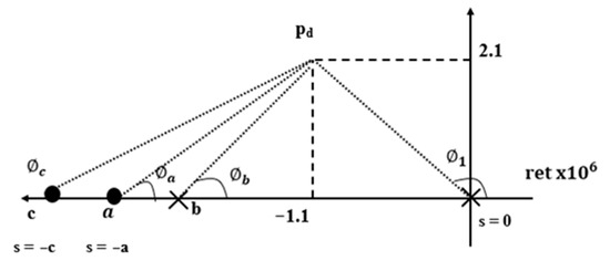 The transfer function of the plant from Equation (33) can be expressed in terms of the zero and the pole, as follows: