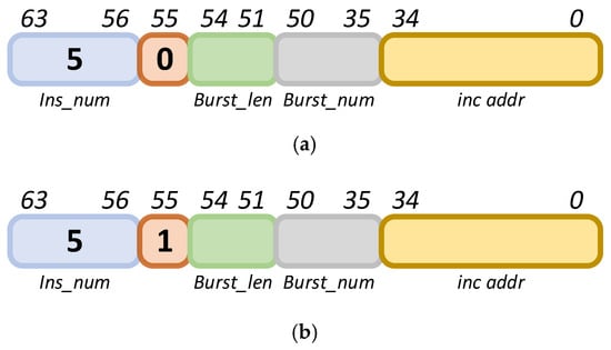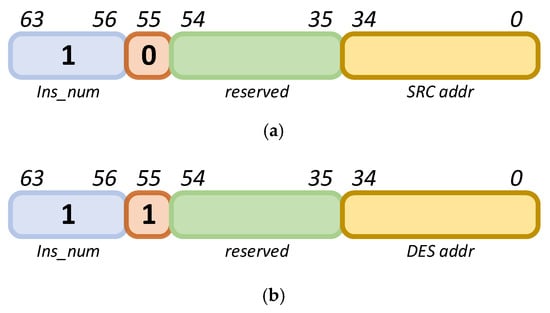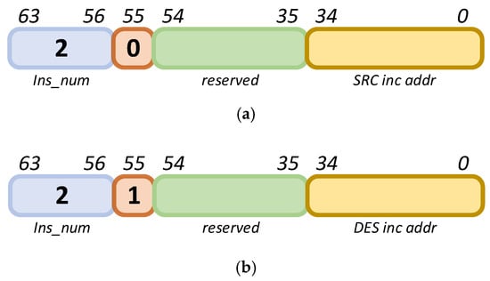 The instruction label is 2. When the 55th bit is 0, this instruction sets the source address jump increment; when the 55th bit is 1, it sets the destination address jump increment. The address width is 35 bits, and the specific configuration method is shown in Figure 12. It should be noted that the two’s complement of the address must be used for address subtraction.