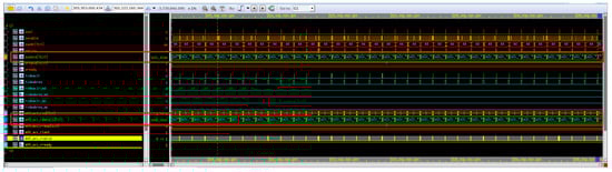Under the same test scenario, we used the same test stimuli to simulate the ARM pl330w_DMA, and the resulting waveform diagram is shown in Figure 29. The pl330w_DMA uses a set of dmareq/dmaclr signals to handshake with other IPs. Therefore, by counting the number of handshakes of the dmareq/dmaclr signals in the simulation waveform, we can obtain the quantity of data transmitted during the simulation period. It should be noted that, since the pl330w_DMA has only one set of data access interfaces based on the standard AXI3 protocol, there is only a single AXI-AXI test channel during its simulation testing.